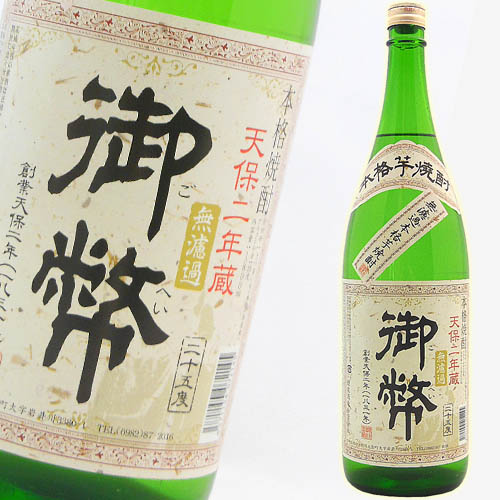 姫泉酒造は宮崎県高千穂の地で天保二年(1831年)創業、近年まで清酒製造を行なっており、その伝統と技術が七代目当主に受け継がれ、現在の本格焼酎の造りに行かされている小さな蔵元です。 この『無濾過御幣』は、原料に南九州産の黄金千貫(さつまいも)を、仕込み水には五ヶ瀬川沿いにある蔵の対岸から湧き出る湧水を使用し、白麹仕込み、常圧蒸留仕立てにて造られた本格芋焼酎です。 芋本来のうまさを大切に、味わいを楽しんで頂くために、本来のうまみまで取り去ってしまう機械による濾過は一切行わず、余分な油分のみを独自の方法で、手作業にて丁寧にすくい取っています。 無濾過の醍醐味を存分にお楽しみ下さい。